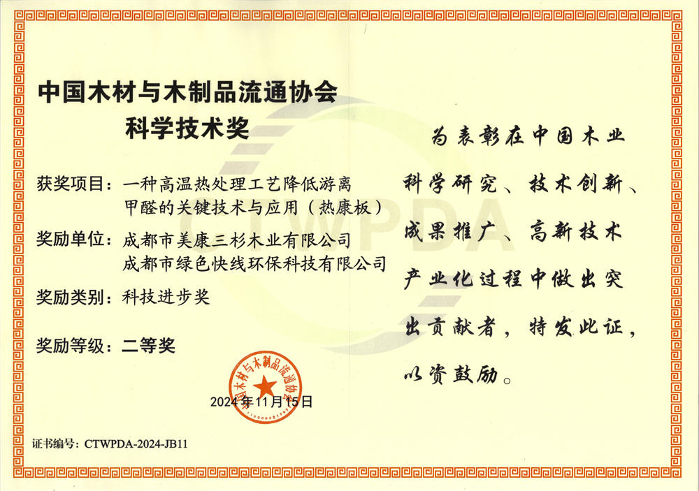 会上,对在推动绿色家居产业链发展中做出杰出贡献的个人和企业进行了荣誉表彰。其中,热康板项目和核心研发人员张焕兵、叶昌海,凭借其卓越的创新技术和科技成果,分别荣获科技进步二等奖。这一荣誉不仅是对热康板技术实力的认可,更是对其在推动绿色家居产业链发展中所做出的积极贡献的肯定。